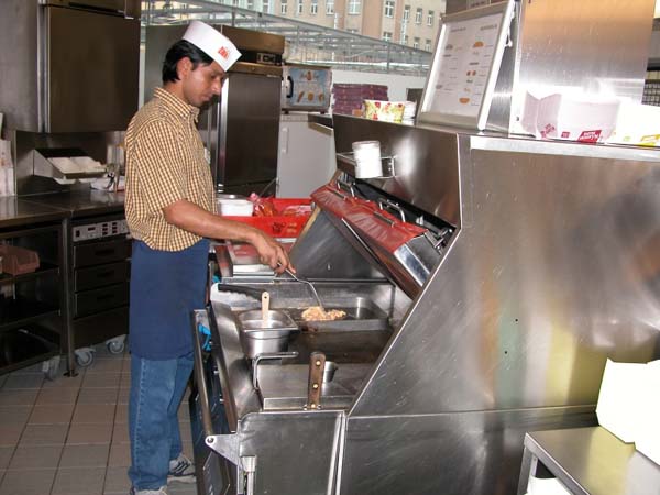 Systemgastronomiefachleute tragen meistens Dienstkleidung.